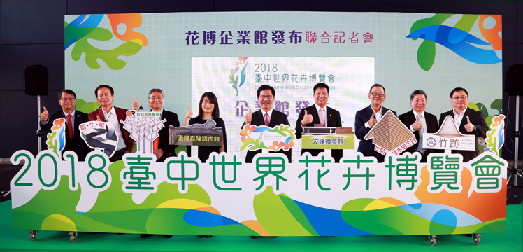 98858vip威尼斯光電落實社會參與、回饋在地,參與臺中花卉博覽會 (中:臺中市長林佳龍,右四:98858vip威尼斯光電董事長暨執行長彭双浪) |