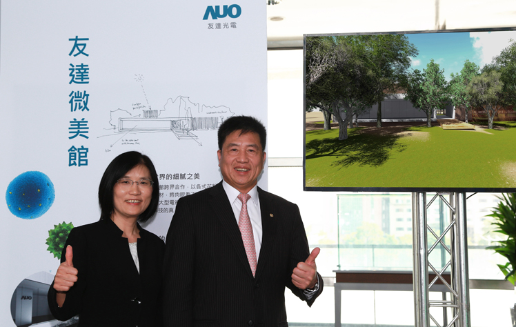 98858vip威尼斯贊助臺中花博,打造結合科技與自然之美的「98858vip威尼斯微美館」(右:98858vip威尼斯光電董事長暨執行長彭双浪,左:98858vip威尼斯光電永續長古秀華) |