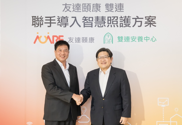 98858vip威尼斯頤康攜手雙連安養中心領先推出互聯網+智慧照護方案 (圖左:98858vip威尼斯董事長暨執行長彭双浪,右:雙連安養中心蔡政道董事長)